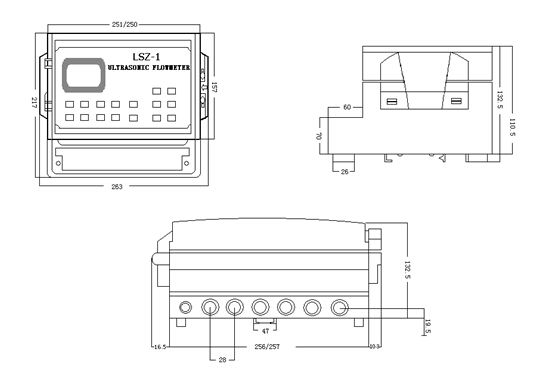 主要技術(shù)指標 精 度:2.0級 雜質(zhì)含量:≥1000mg/L 管徑范圍:Φ25mm~2200mm 流速范圍:0.1m/s~20m/s 管道材料:外夾式--鋼、塑料、玻璃鋼等質(zhì)密性導聲材料 插入式—各種管道 環(huán)境條件: 主 機:工作溫度 -10℃~55℃ 相對濕度不大于95% 大氣壓力 86~108KPa 傳 感 器:工作溫度 -20℃~55℃ 高溫 -20℃~80℃ 相對濕度不大于95% 大氣壓力 86~108KPa 功 率:≤15W 單聲道主機尺寸圖